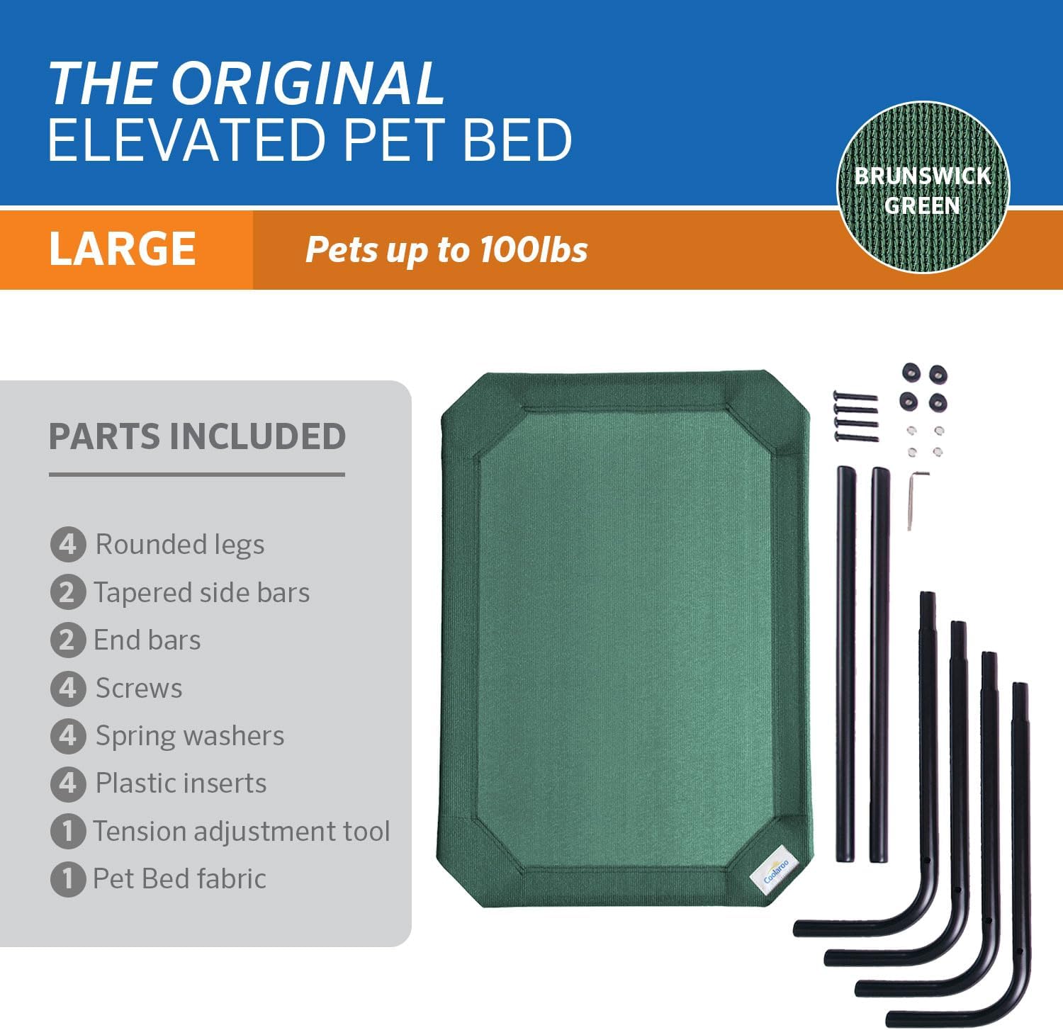 Gale Pacific Coolaroo The Original Cooling Elevated Dog Bed, Indoor and Outdoor, Large, Brunswick Green, 51.00" x 31.50" x 8.00"