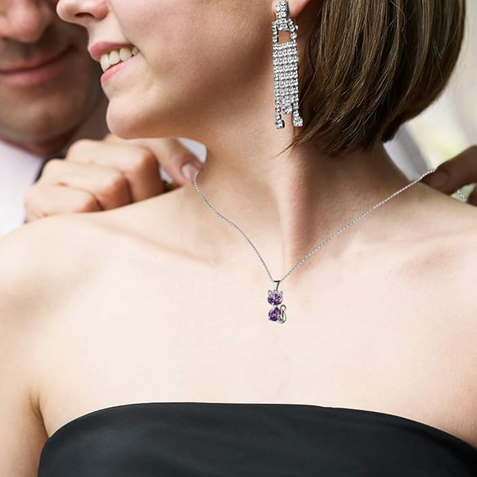 - Comes with a deluxe jewelry gift box and a piece of greeting card, awesome gift for cat lover and someone born in February, as it is their Birth Stone; Glittering for party, wedding, anniversary and Valentine's Day Festival etc