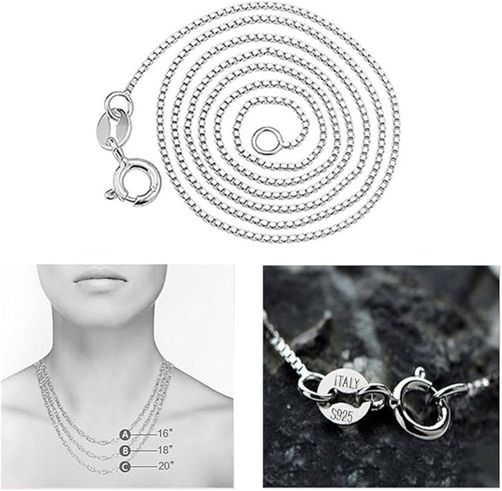 - The figure is about 3/4" in length from the top of the bale; Shiny 925 silver box chain is 18''