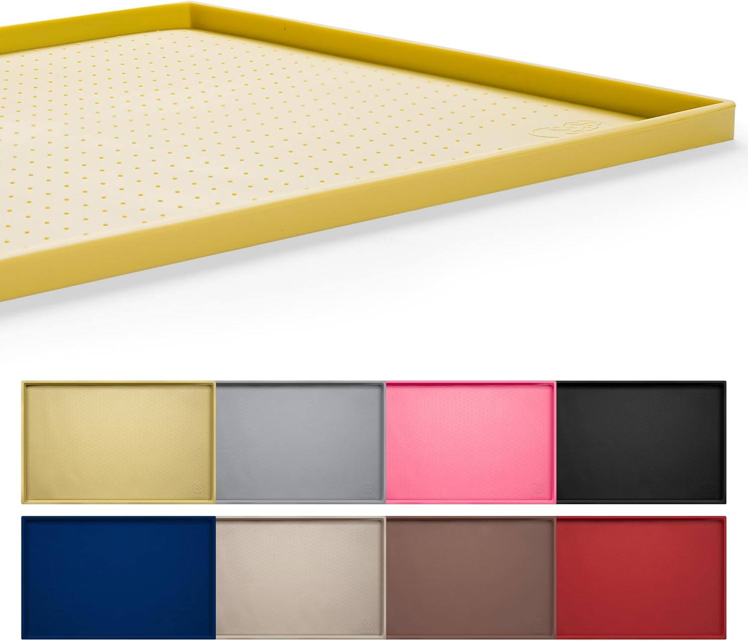 Hubulk Dog Feeding Mat,100% Waterproof Food Grade Silicone Pet Food and Water Bowl Placemat,Dishwasher, High Raised Edge to Prevent Spills,Nonslip Tray to Stop Messes on Floor (24"x16"x0.5", Yellow)
