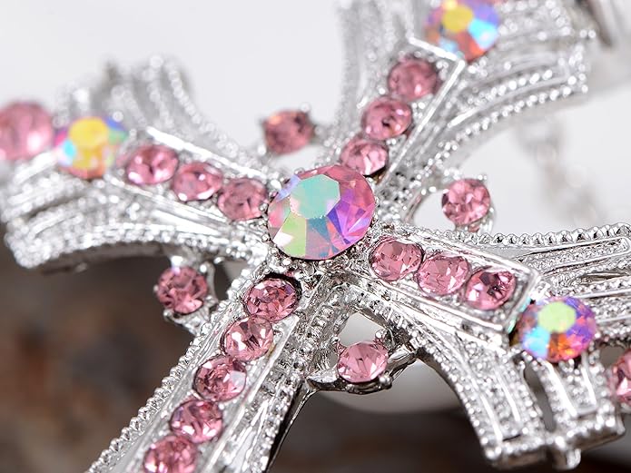 - FEATURES: Cable chain necklace with clear crystal colored rhinestones and ornate cross pendant