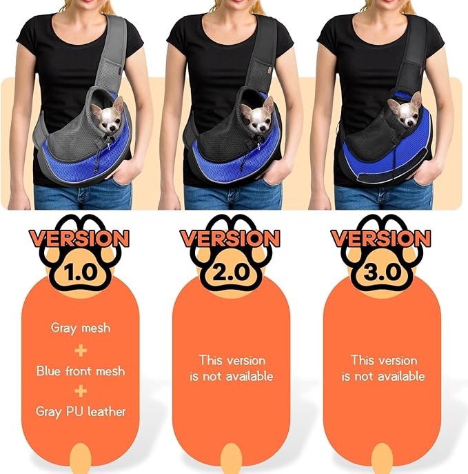 YUDODO Pet Sling Carrier for Small Dogs & Cats – Hands-Free Puppy Carrier with Safety Hook, Large Zipper Pocket, Soft Breathable Mesh, Adjustable Strap & Reflective Strip (Blue 1.0 M)