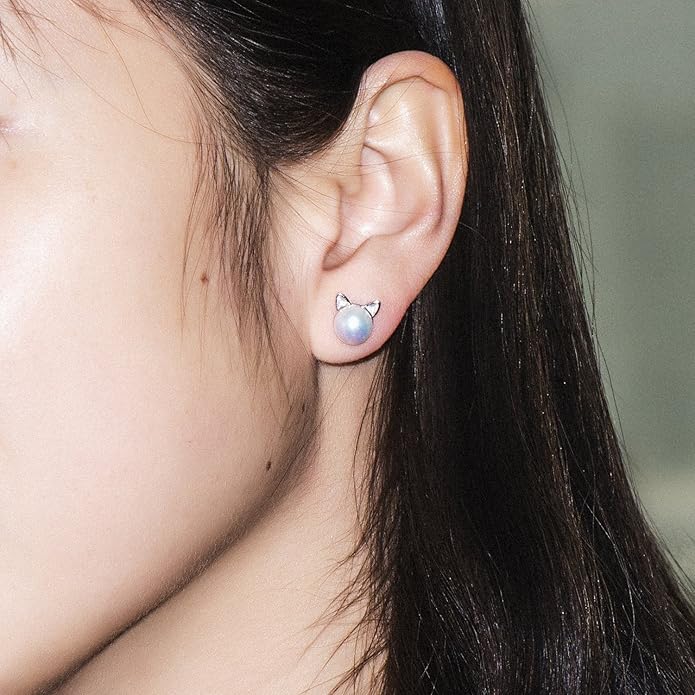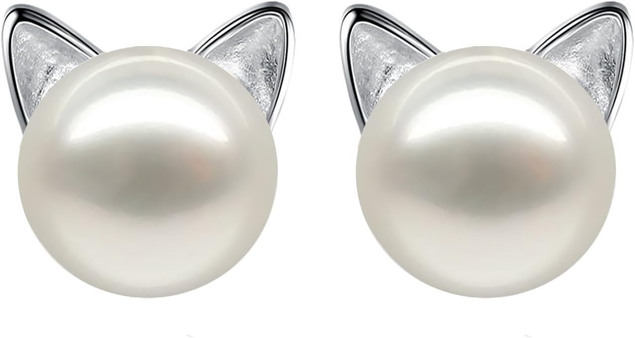 - Cat stud earrings matiral:925 sterling silver and Freshwater Pearl.Our pearl are all quality freshwater nature pearls,so some of the shape are round some are a little oval.