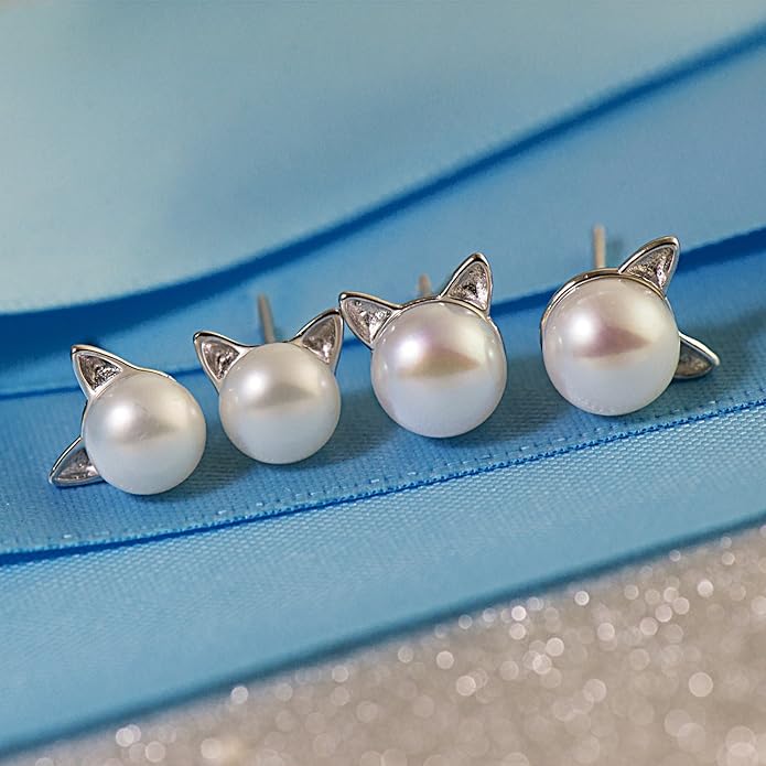 - Size:The sterling silver cat earrings pearl diameter is about 0.8cm-0.85cm(0.31”-0.33“),Total cat earring diameter is about 1.1cm(0.43").