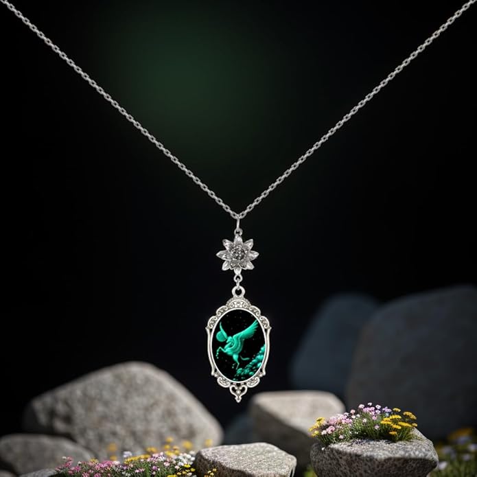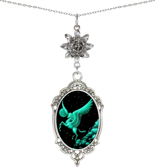 Yspace Lotus Charm Necklace Antique Decor Cameo Pendant 2 Chains Velvet Pouch for Gift