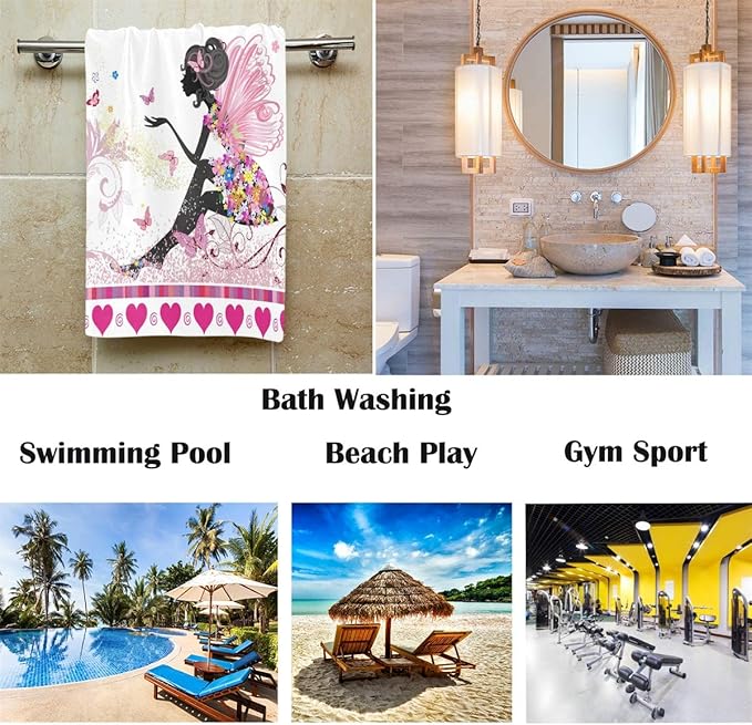 Wamika Flower Fairy Pink Hand Towels Butterfly Hearts Love Flowers Ultra Soft Highly Absorbent Bath Towel Multipurpose Bathroom Towel for Hand Face Gym Spa 16x30 in