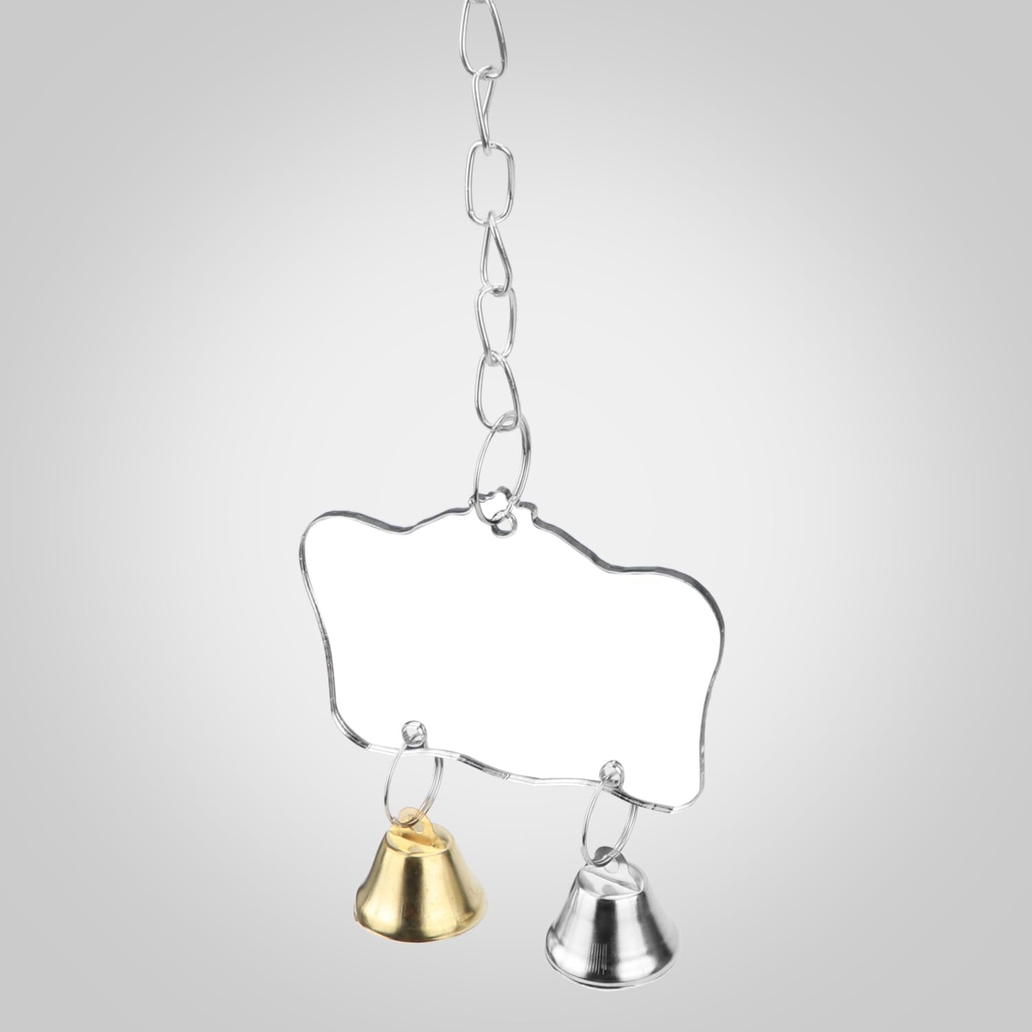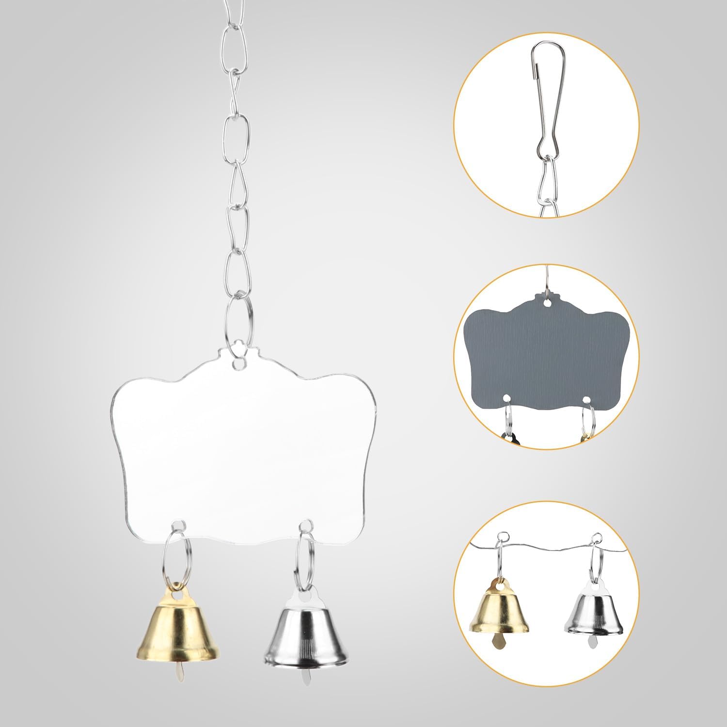 - ANTI-SHATTER--The anti-shatter mirror can satisfy the birds' habitual needs of looking into the mirror. With chain and bells,Cute shape, with bell toys, to stimulate the curiosity of the bird