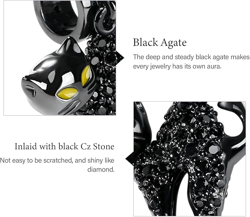 - 😺【Inspiration】: This is one of the black cats dangling, making a unique style of naughty cat. Tail up, the enameled cat crafted in 925 sterling silver is watching you with her special pose. Eyes in yellow like the stars in the dark mysterious space. It reminds you of the joys in life. Remember to face the tough life in cats cuteness.