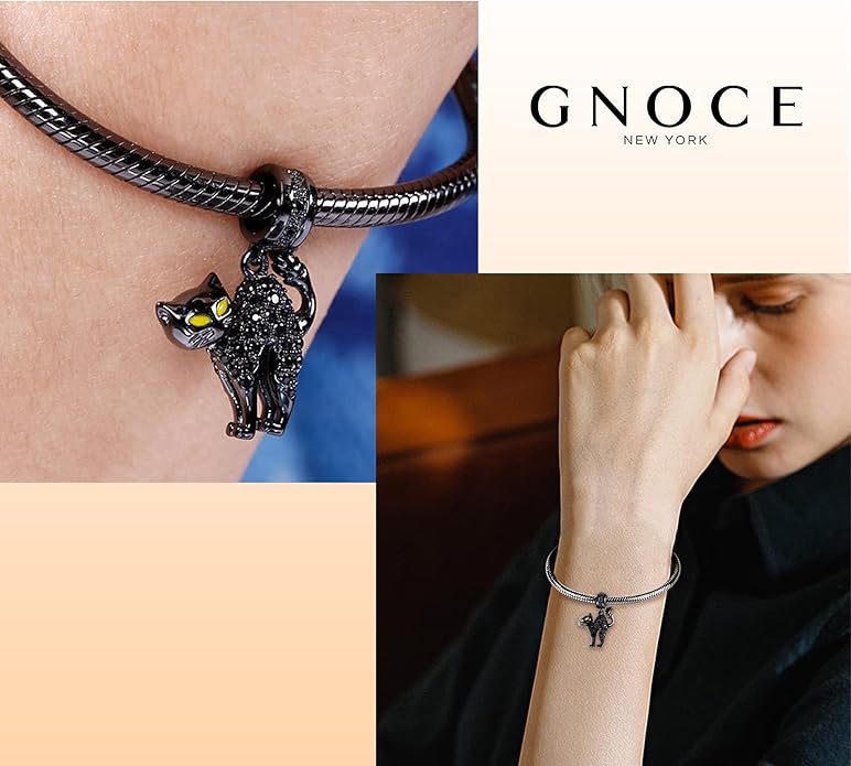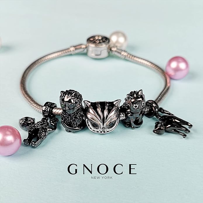 GNOCE Black Cat Charm 925 Sterling Silver Naughty Cat Pendant Charms for Bracelet/Necklace Jewelry Gift for Women