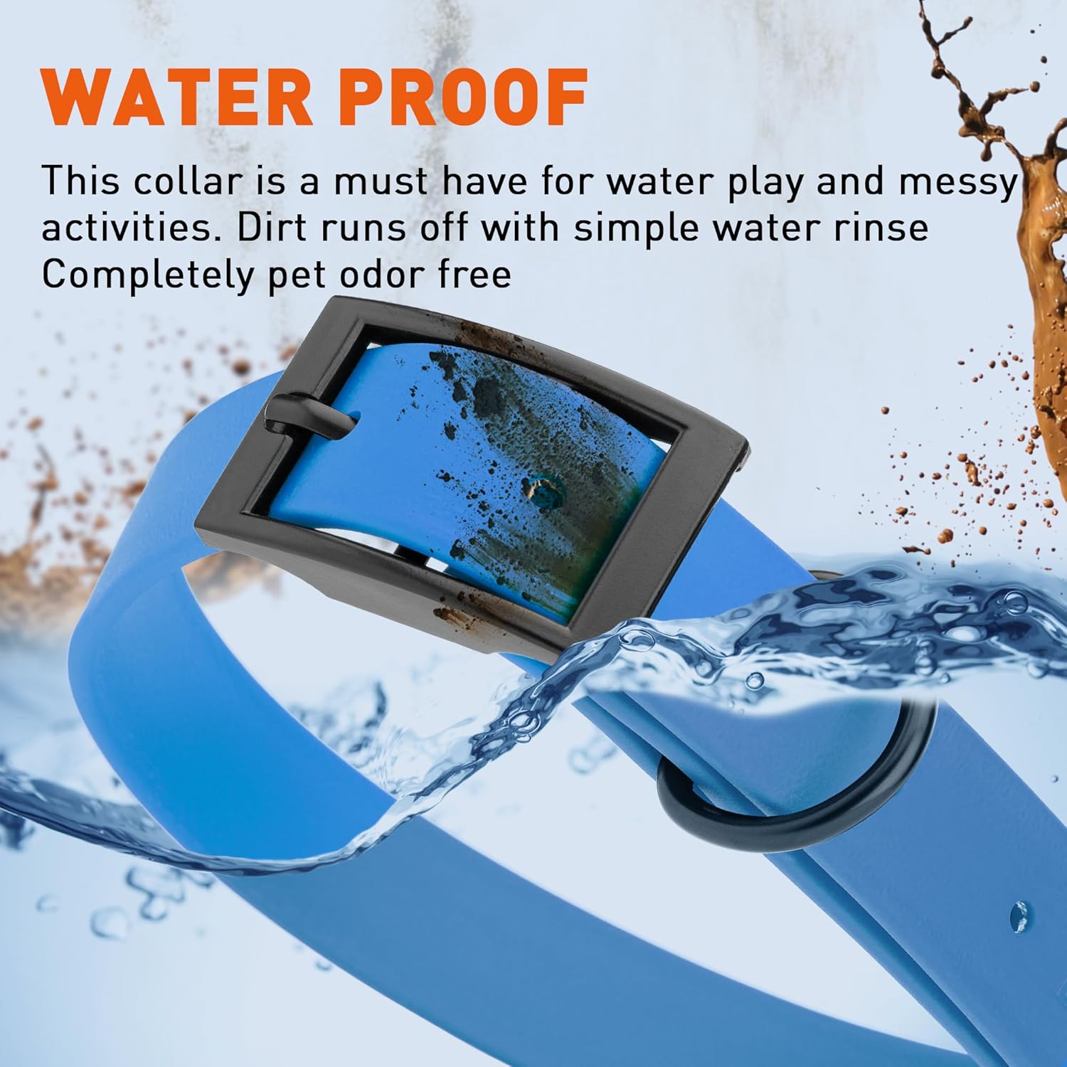 • Free Your Dog to romp in puddles and retrieve from lakes with the Dogline Biothane Waterproof Dog Collar. This water-repellent collar stays dry and odor-free, without shrinking or losing flexibility.