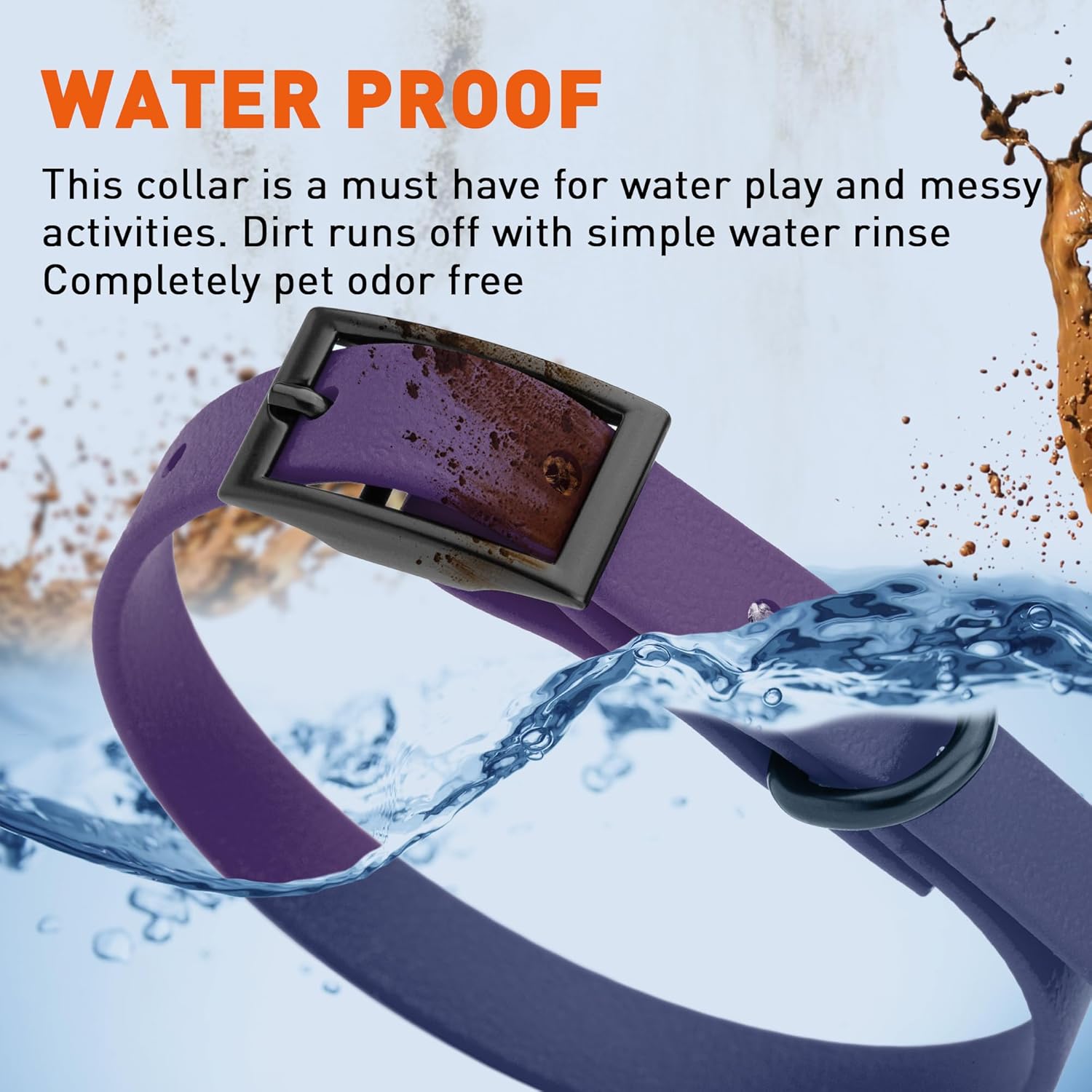 Dogline Biothane Waterproof Dog Collar Strong Coated Nylon Webbing with Black Hardware Odor- Proof for Easy Care Easy to Clean High Performance Fits Small Medium or Large Dogs, Violet Purple