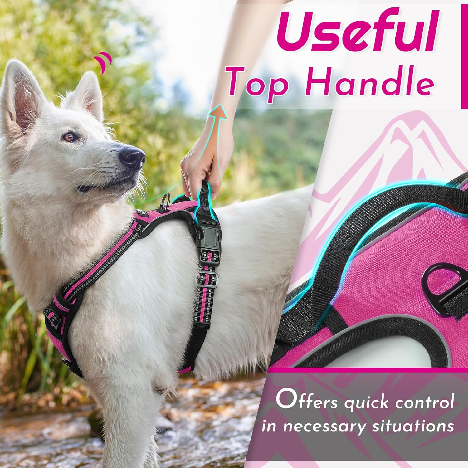 Eagloo Dog Harness Large Breed, No Pull Service Vest with Reflective Strips and Control Handle, Adjustable and Comfortable for Easy Walking, No Choke Pet Harness with 2 Metal Rings, Rose Red, XL