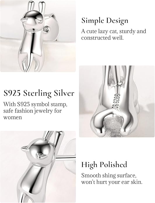 - ✦Cute Cat Design: Polished finish and comfort fit. Hypoallergenic and nickel free.