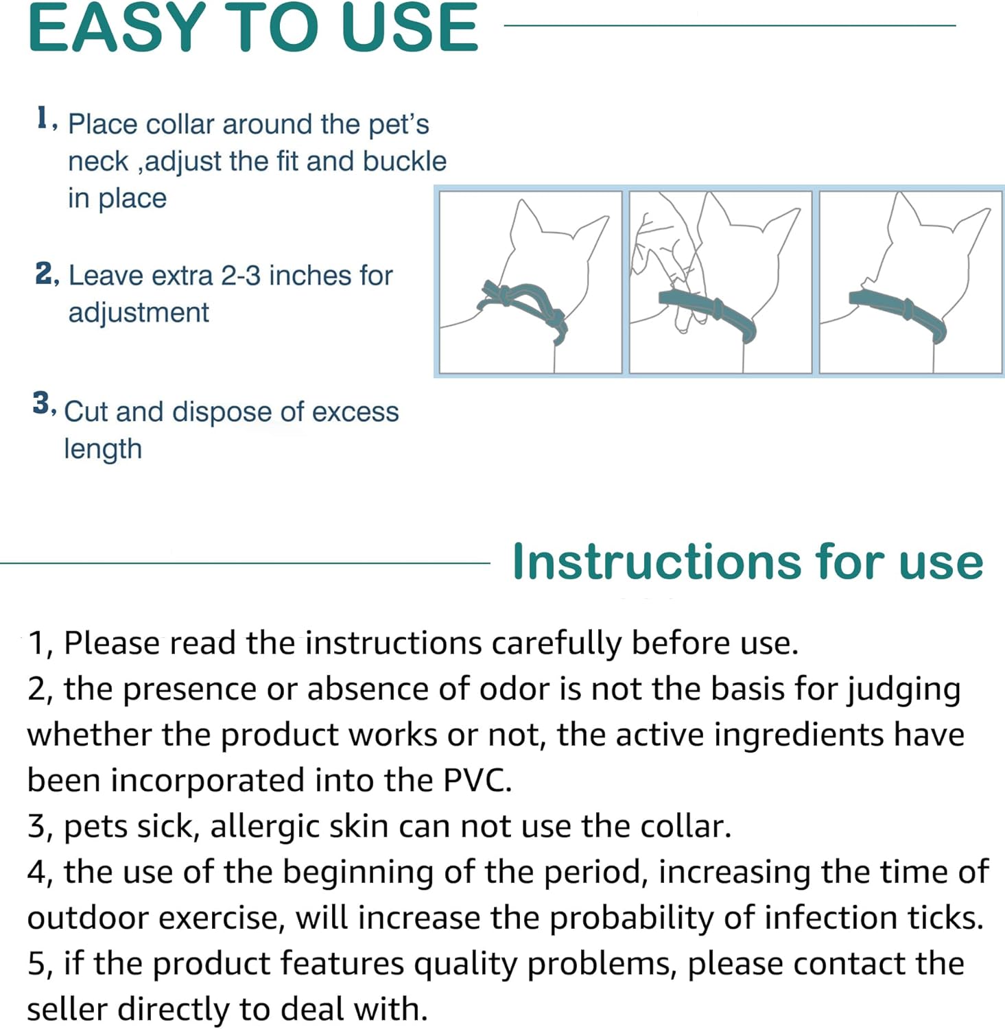 - WATERPROOF COLLAR. Product active ingredients have been integrated into the PVC carrier, will be slowly released, and distributed in the pet skin oil layer to achieve the purpose of pest repellent; note: the weakening of the smell does not mean that it does not work.