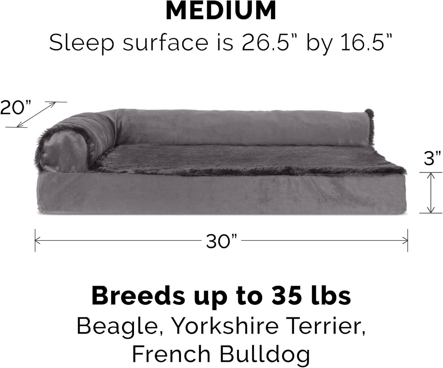 Furhaven Cooling Gel Dog Bed for Medium/Small Dogs w/ Removable Bolsters & Washable Cover, For Dogs Up to 35 lbs - Plush & Velvet L Shaped Chaise - Platinum Gray, Medium