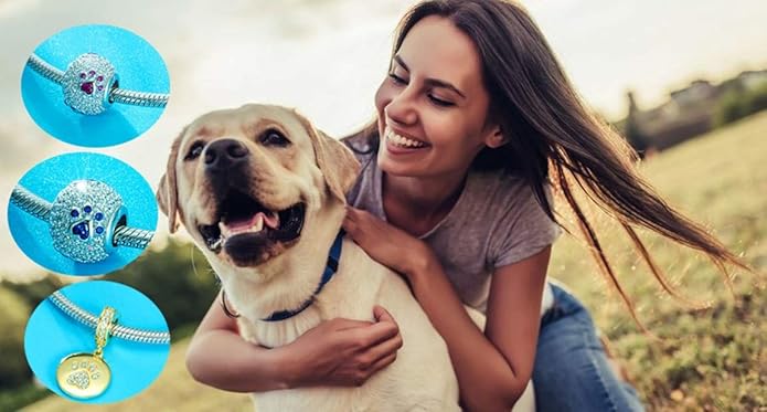 GEMDAZZ Sparkling Puppy Paw Print Charms in 925 Sterling Silver, Pave Dog Pawprint CZ Round Beads and Always in My Heart Charms, Gift for Animal Lover, fit European Women Bracelet/Necklace