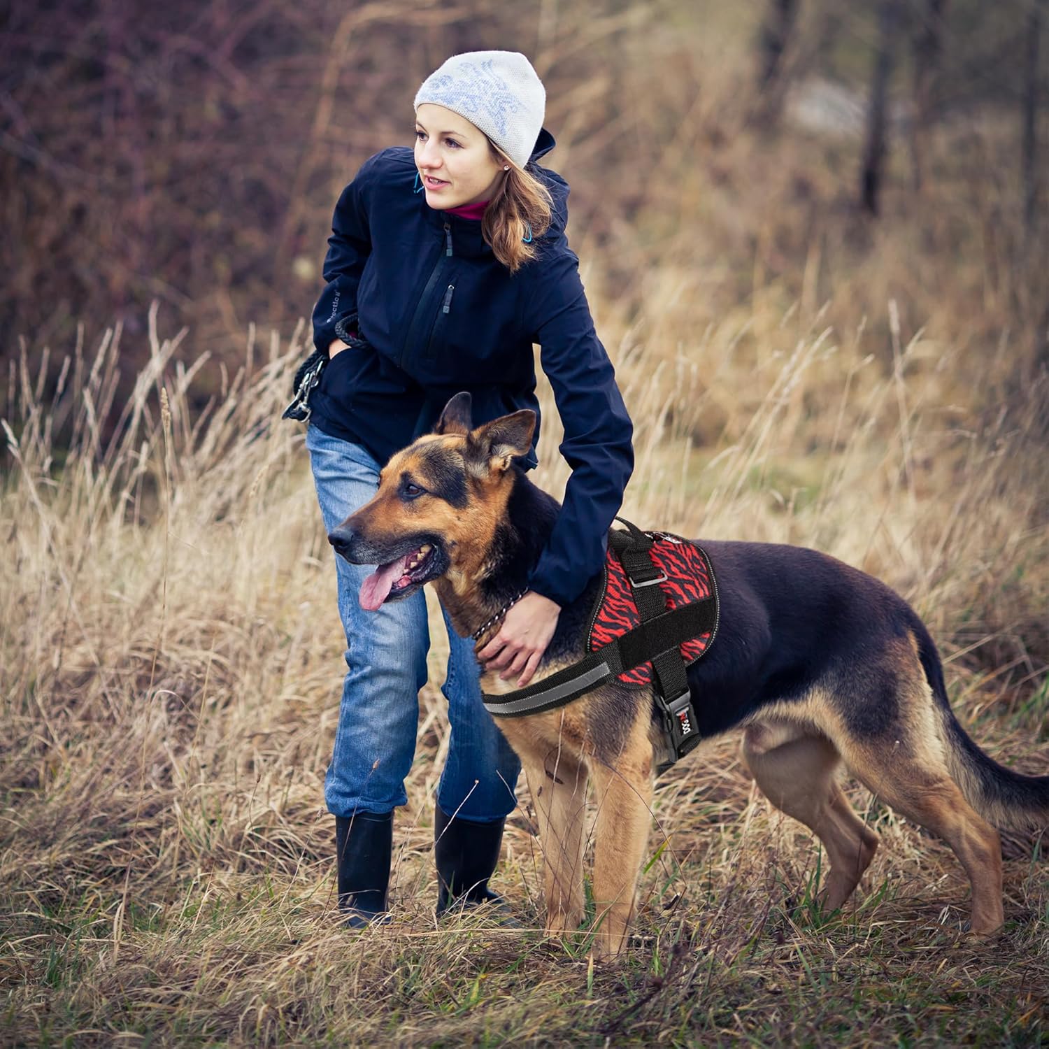 Dogline Dog Harness, Reflective No-Pull Adjustable Vest with Handle for Walking, Training, Breathable, No - Choke Harness for Small, Medium or Large Dogs Room for Patches Zebra Black/Red XL 33"-46"