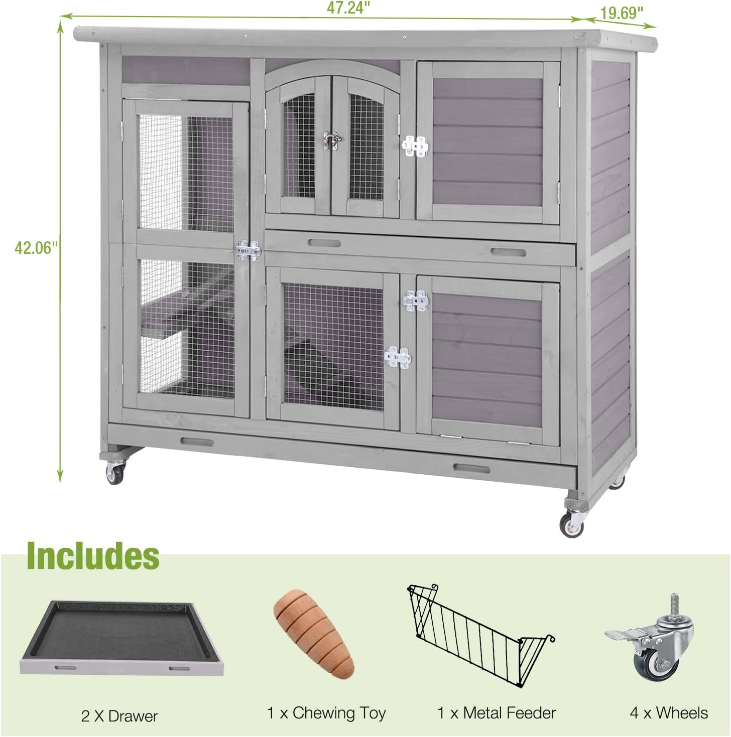 - Easy Movement: 4 stronger metal wheels to move the indoor rabbit hutch easily and quickly. 2 of them are brakes to fix well and keep safe
