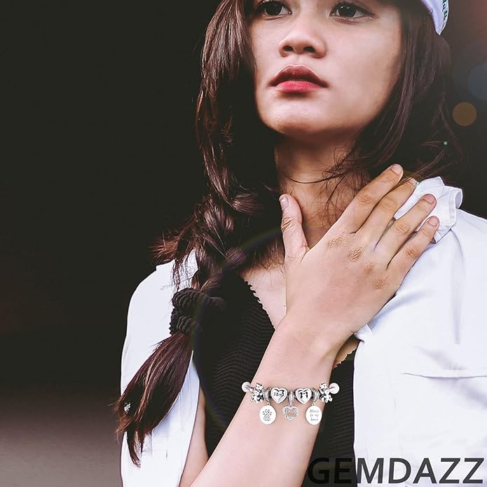 GEMDAZZ Sparkling Puppy Paw Print Charms in 925 Sterling Silver, Pave Dog Pawprint CZ Round Beads and Always in My Heart Charms, Gift for Animal Lover, fit European Women Bracelet/Necklace