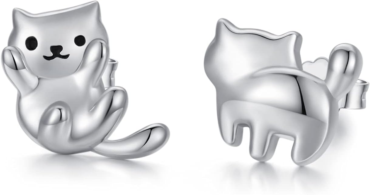 925 Sterling Silver Cat Earrings Cute Animal Kitten Stud Earrings cat Jewelry Gifts for Women Girls Hypoallergenic Earrings for Sensitive Ears