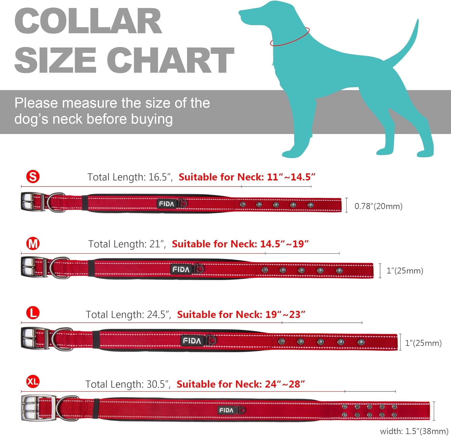 Fida Heavy Duty Dog Collar, Ultra Comfortable Soft Neoprene Padded, Adjustable Reflective Nylon Pet Collar with Durable Metal Belt Buckle for Small Breeds (S, Red)