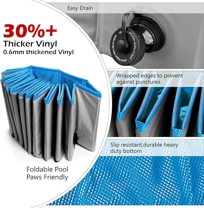 - Portable and Foldable Pool: easy to store and bring with you and your dog everywhere.It can be used as dog pool kiddie pool kids pool wading pool pet dog bath tub etc.