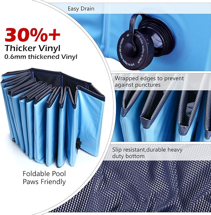 - Portable and Foldable Pool: easy to store and bring with you and your dog everywhere. It can be used as dog pool kiddie pool kids pool wading pool pet dog bath tub etc.