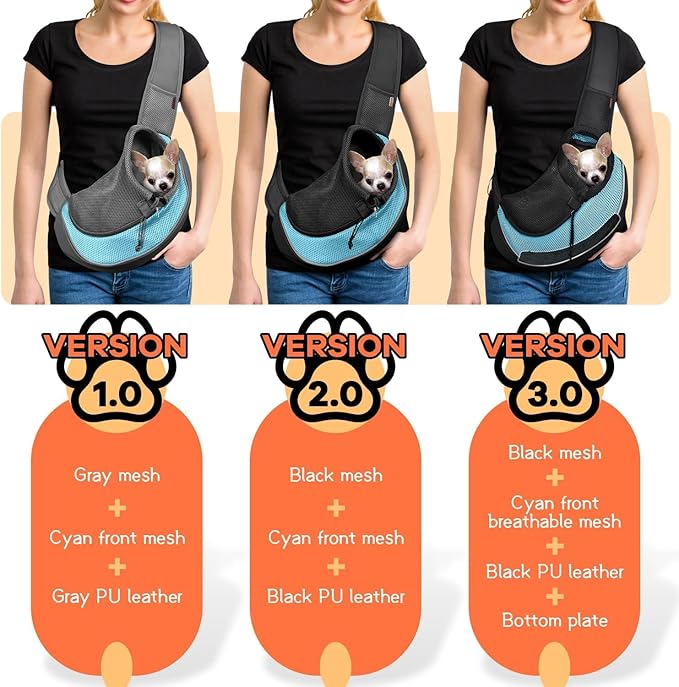YUDODO Pet Sling Carrier for Small Dogs & Cats – Hands-Free Puppy Carrier with Safety Hook, Large Zipper Pocket, Soft Breathable Mesh, Adjustable Strap & Reflective Strip (Cyan 2.0 S)