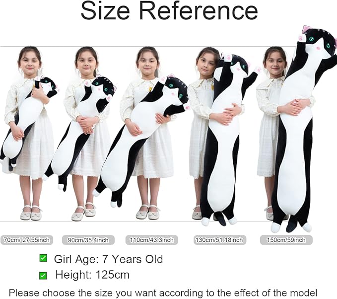 Giant Cat Pillow Plush Cartoon Kitty Sleeping Hugging Pillow, Cuddly Soft Long Kitten Body Pillow Doll Cat Cushion Toy for Kids Girlfriend (Black, 70cm/ 27.55inch)
