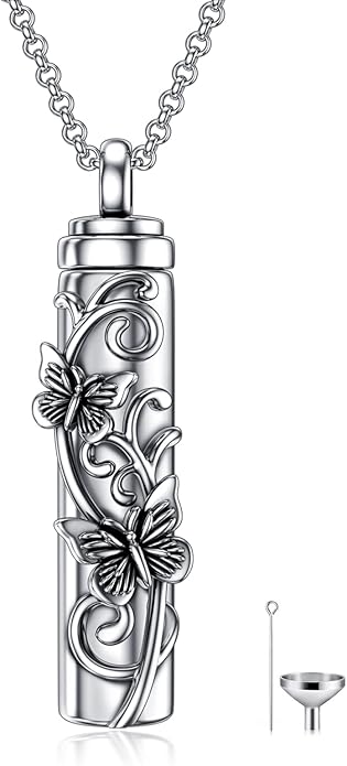 - BUTTERFLY MEMORIAL GIFT : This Butterfly Bar Urn Necklace can be a Meaningful Give for Some One who is Lost Their Loved One, Family Mumbers, Pet, Etc. That's can Help They to Reduce Sorrow and Keep The Memory of Loved Ones in Their Heart Forever. In addition, it can be a Memorial Necklace be used to Store Tiny Items like Petals, Perfume, Hair, etc. As a Memory Gift for Her.