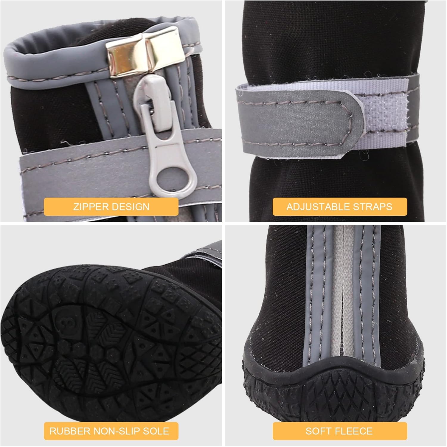 • 【NON-SLIP AND DURABLE】Our dog boots have rubber soles, which are very sturdy. The non-slip sole provides stability and traction for dogs, making it easier for dogs to play at home and outdoors.