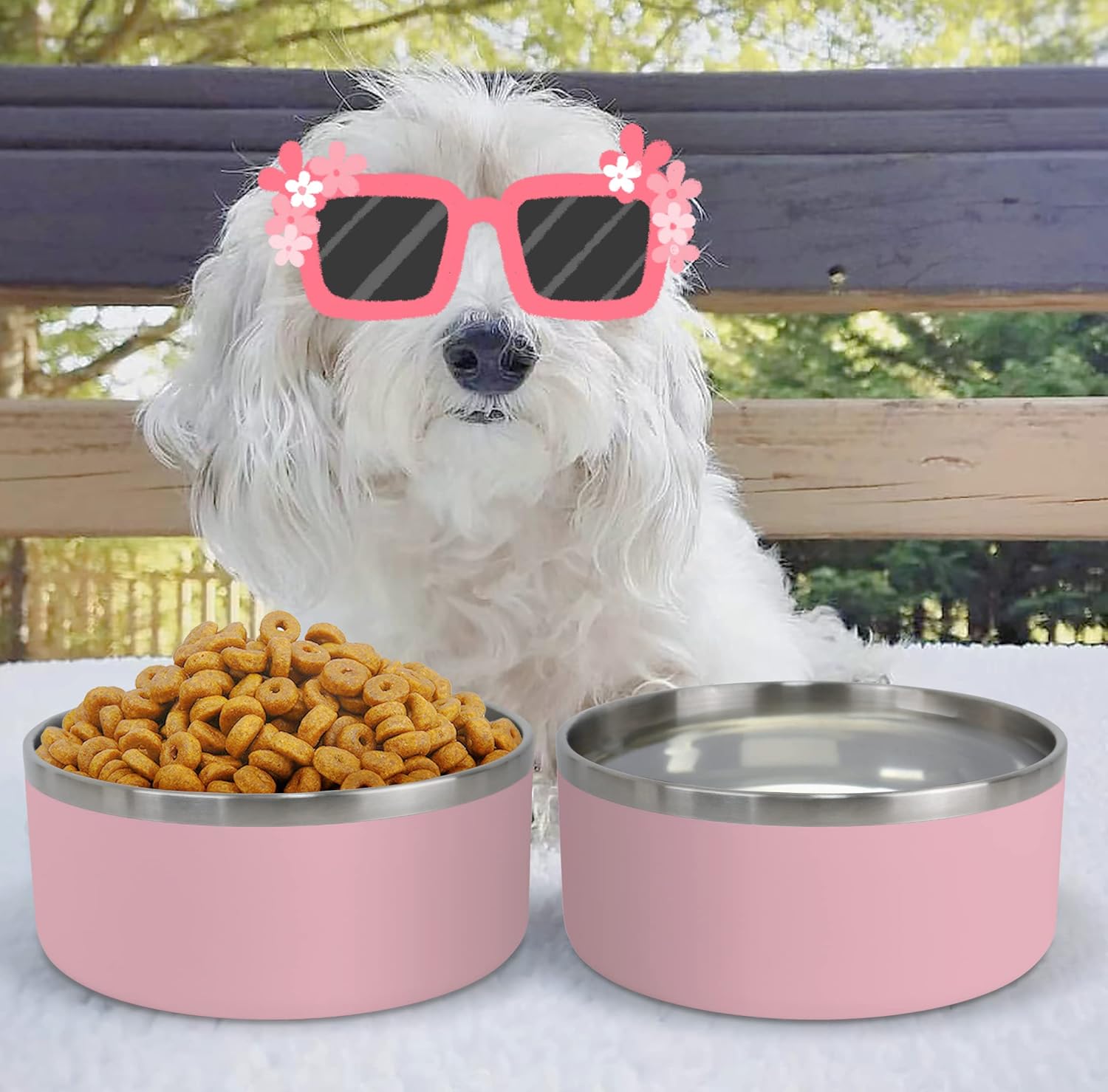 IKITCHEN Dog Bowl for Food and Water, 64 Oz Stainless Steel Pet Feeding Bowl, Durable Non-Skid Double Wall Insulated Heavy Duty with Rubber Bottom for Medium Large Dogs (64 Ounces/8 Cup, Pink)