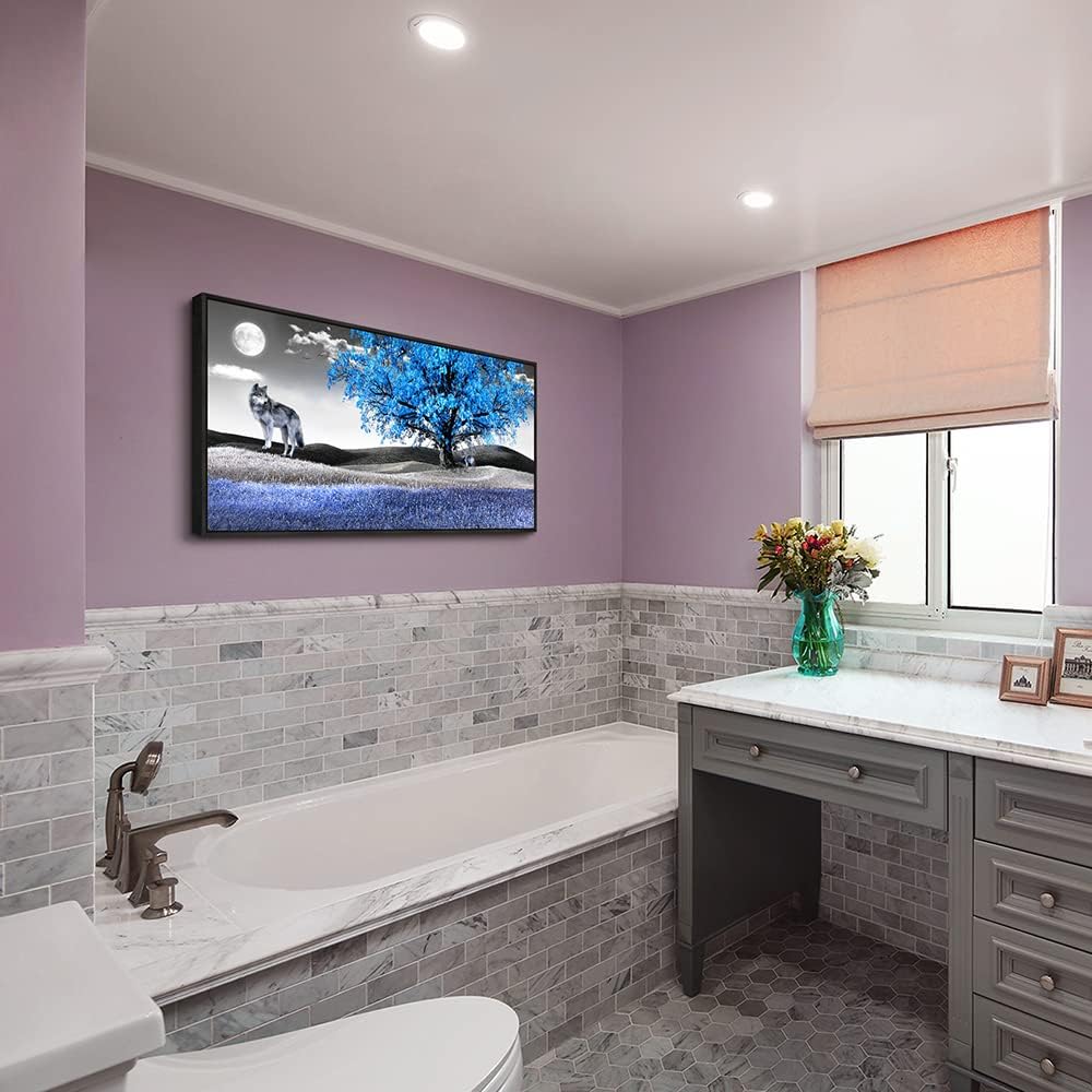 Frame Canvas Wall Art For Living Room Family Wall Decorations For Bedroom Modern Office Wall Decor Paintings Blue Tree Landscape Pictures Artwork Canvas Art Prints Home Decor Black Framed 24" X 48"
