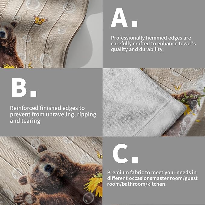 - 【Soft Material】The brown bear hand towels for bathroom made by polyester microfiber front, white premium cotton back for quick drying. Lightweight, super soft and skin-friendly.