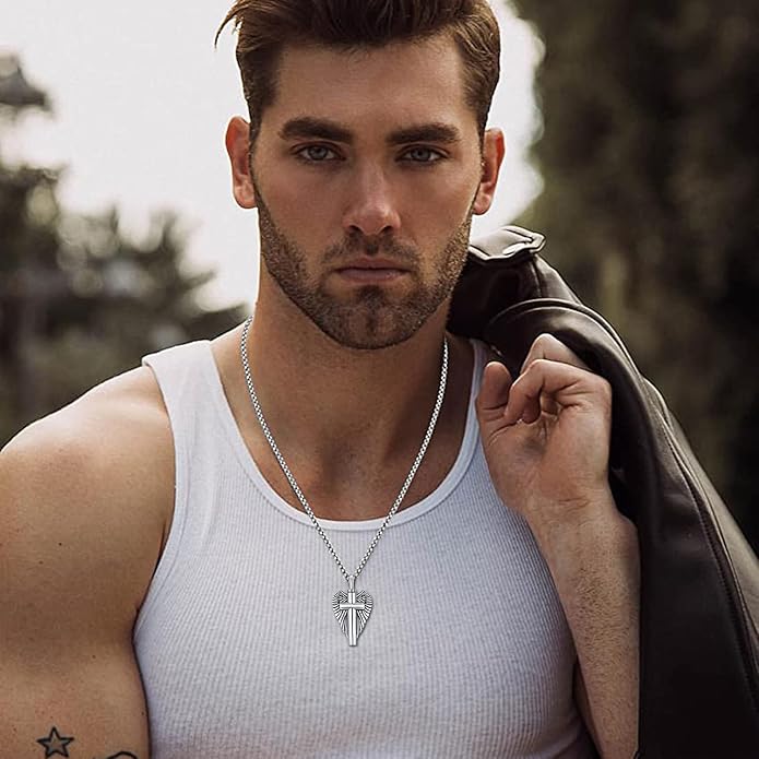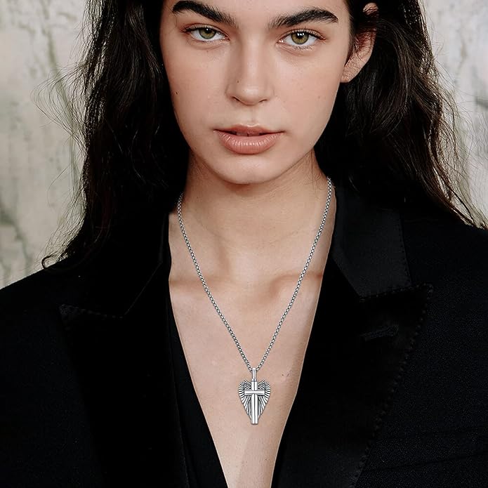 - Size: sterling silver urn pendant: 18*31mm (0.71*1.22inch), cross pendant weight: 5.5g, Adjustable chain length: 50+5cm (20+2inch). A unique, elegant and lustrous heart angel wing urn necklace, suitable for husbands, boyfriends, brothers,dads and other men.