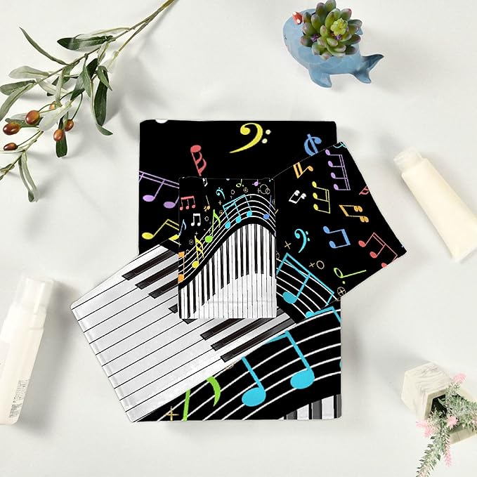 Gaming 3 Piece Towel Bathroom Sets, 1 Bath Towel, 1 Washcloth, 1 Hand Towel, Cotton Fast Dry Soft Absorbent Towel Set for Home Kitchen Family (Music Note Piano)