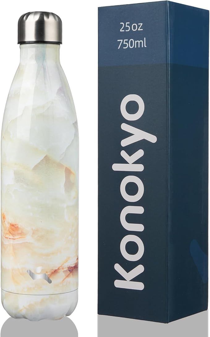 Insulated Water Bottles,25 oz Double Wall Stainless Steel Vacumm Metal Flask for Sports Travel,Marble Jade