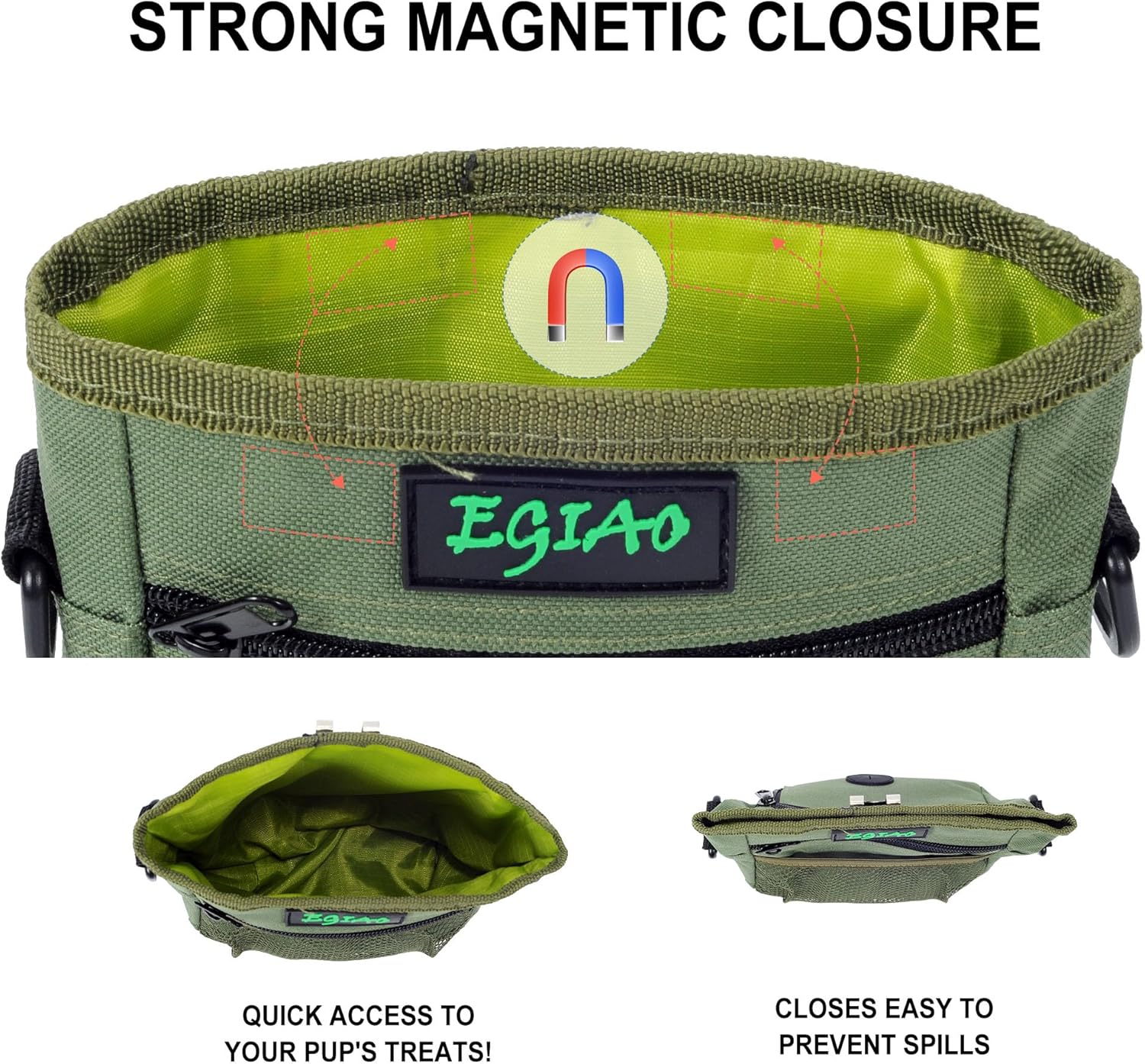 Dog Treat Pouch with Collapsible Dog Bowl, Training Clicker and Poop Bags, Treat Pouches for Pet Training, Magnetic Closure, Built-in Poop Bag Dispenser, Waist Belt Clip, Puppy Treat Bag - Green