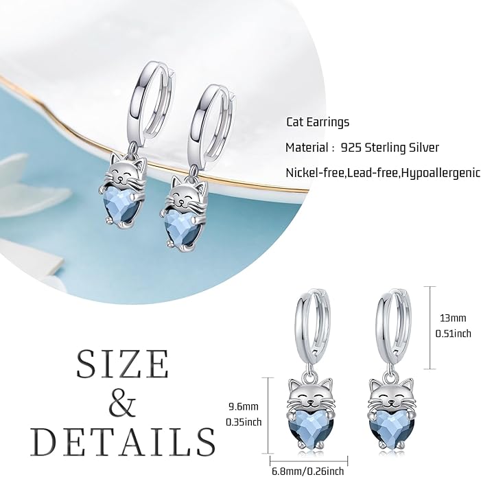 - Best Cat Gifts: The sterling silver cat earrings comes with a beautiful gift box. This is the perfect choice for gifts, suitable for all kinds of scenes, and surprises people. For example, holiday gifts, Valentine's Day gifts; Easter gifts; Mother's Day gifts; Father's Day gifts; Halloween gifts; Thanksgiving gifts; Christmas gifts; girlfriend, daughter, granddaughter, niece, sister, girls gifts and so on.