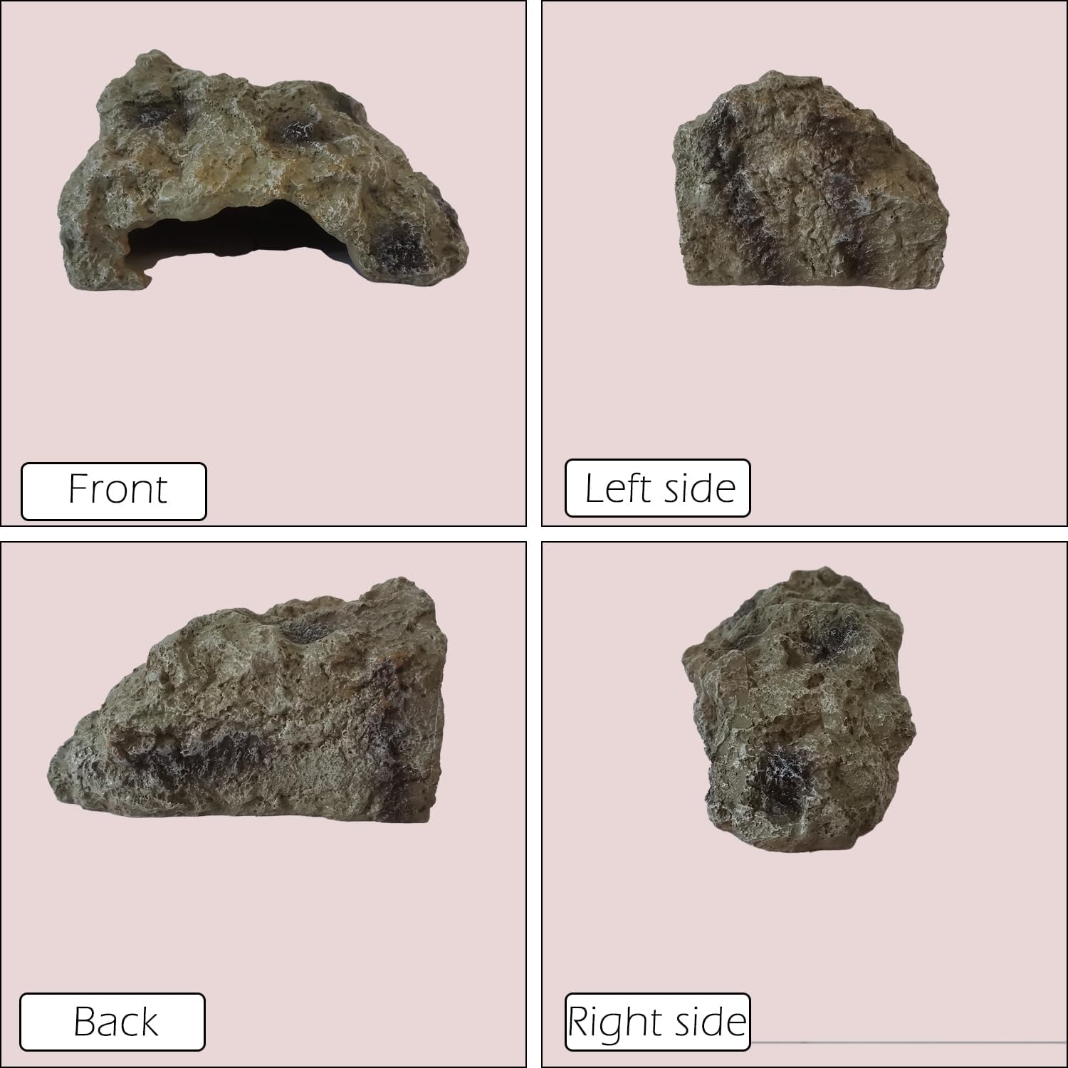 - Space-saving shape - One of the corners is right-angle of this aquarium cave. It’s delicately designed for the tank angle for saving space. It’s more stable when you place this reptile rock by the corner of the snake hide box or terrarium.