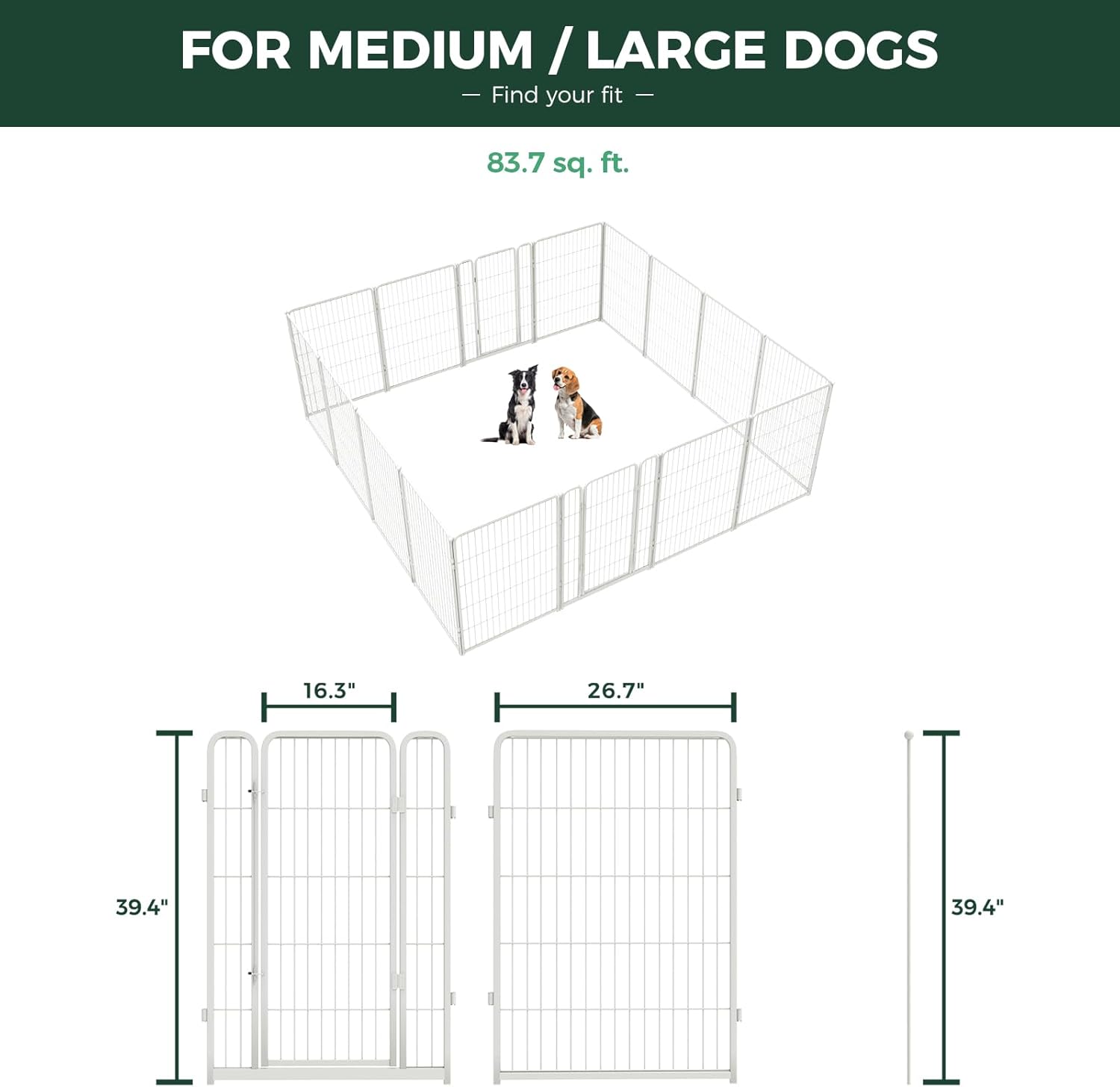 FXW Homeplus Unleashed Indoor Dog Playpen - Stress-Free and Safe Play, Heavy Duty 40 Inch 16 Wire Panels Dog Pen for Medium and Large Dogs, White│Patented