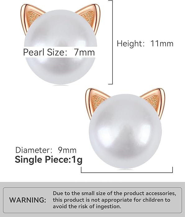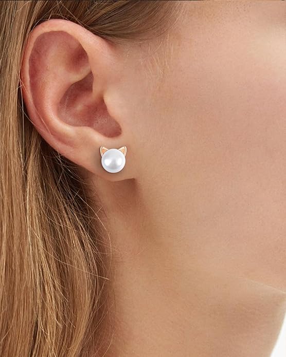 - 7mm Freshwater Pearl Cat Earrings - Elegant Style for Any Look, Ideal Gift Choice