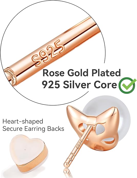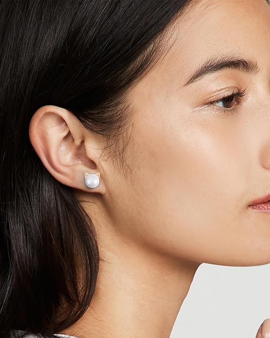 PANSTAR Hypoallergenic 925 Sterling Silver Pearl Cat Earrings for Women - Cute Dainty Cat Stud Earrings, Valentine’s & Mother’s Day Gift with Box