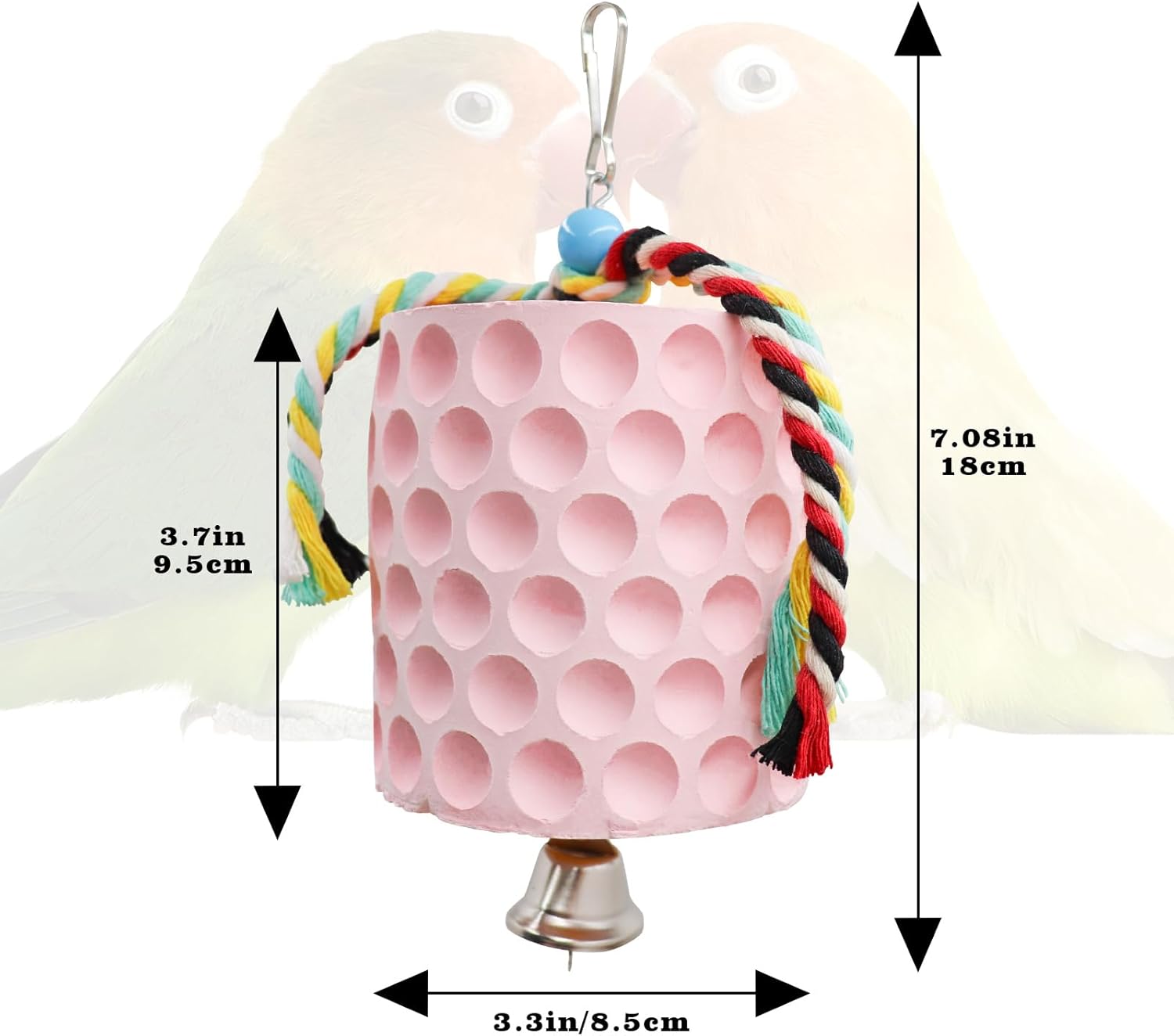 • Attractive Design: Our bird calcium stone toy is made into a over sized circle shape, both attractive and convenient for birds to chew. The bell at the bottom of the toy emits a pleasant ringing sound when pecked.
