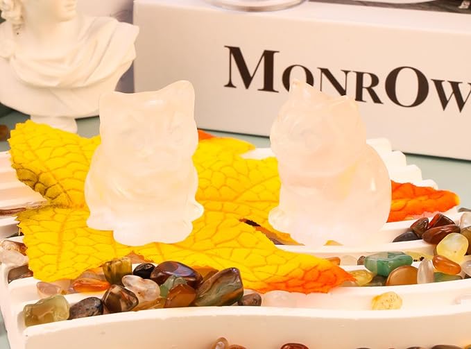 - [Specification]: Size:length:1.14inch,width:1.22inch,High:1.5 inch. Material: Natural Clear Quartz crystal stone, Package: 1PC crystal cat figurines, packed with gift box, ready for gift.The suitable size is easy to carry, put it in your pocket .