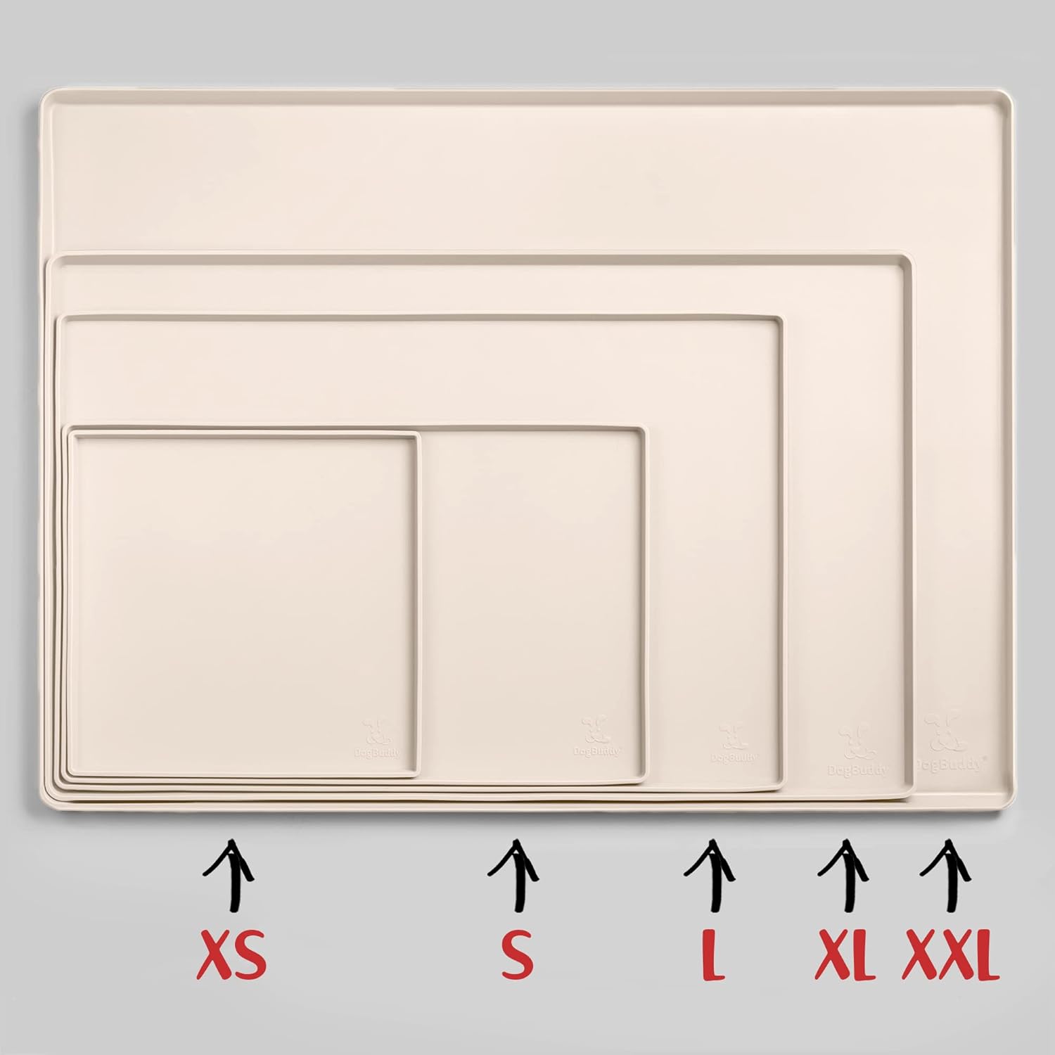 DogBuddy Dog Food Mat – Waterproof Dog Bowl Mat for Food and Water, Silicone Pet Feeding Mats for Floors, Non-Slip Placemat with High Edges for Dogs Bowls, Puppy Essentials (XXL: 32"x24", Vanilla)
