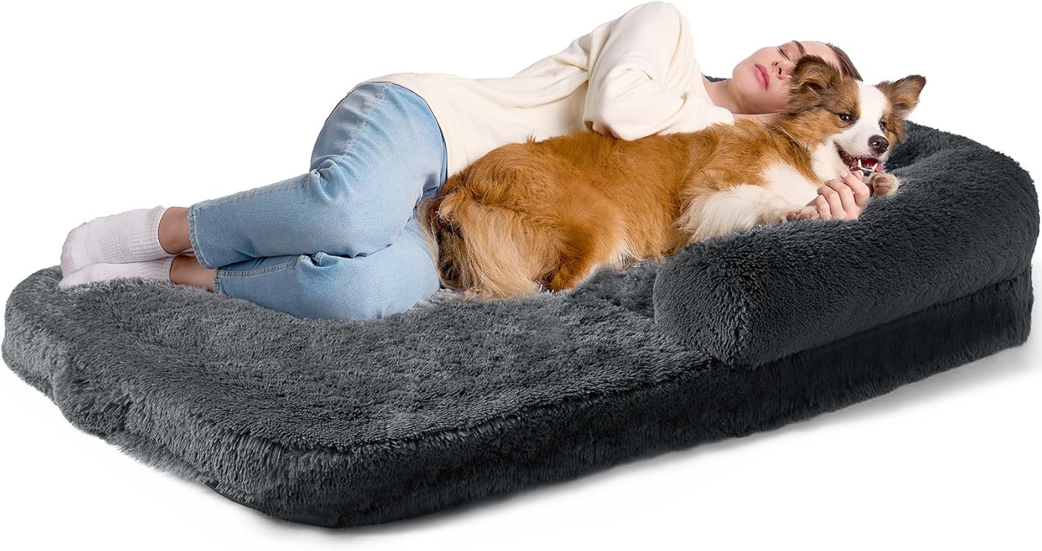 - INTIMATE DESIGN: The bottom of the human size dog bed is non-slip, and the cover has waterproof liner to keep the sponge permanently dry and extend dog bed's service life. The adult dog bed is foldable, so you can just fold it after use to save space.
