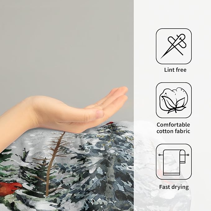 - ღ【Absorbent Softness】: Our winter forest Hand Towel has excellent water absorption to meet all your drying needs. Comfortable fabric made of polyester and cotton, lightweight, super soft and delicate touch, skin friendly.