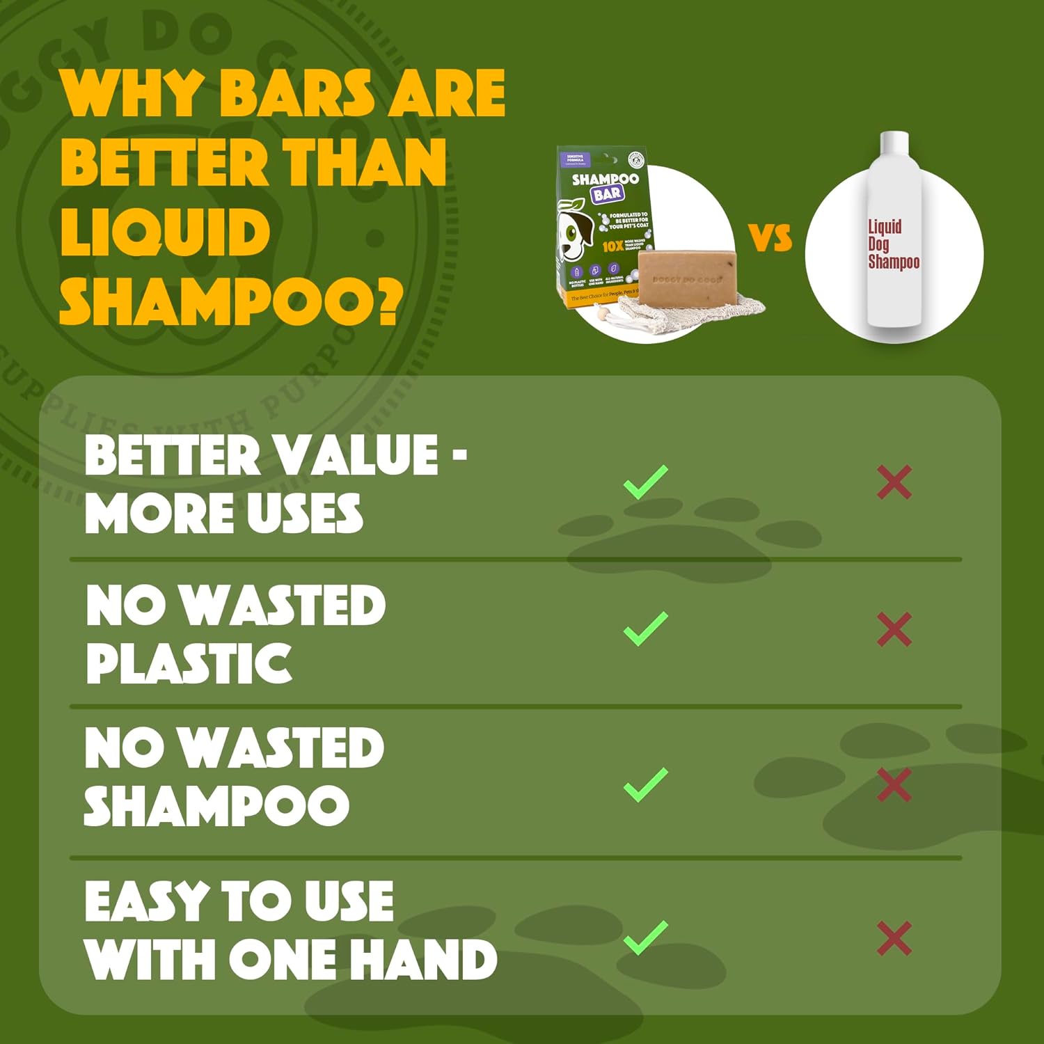 - Save money and reduce plastic: Unlike regular dog shampoos, our shampoo bar is a sustainable and planet-friendly choice for conscientious pet owners and offers the equivalent of 30 fl oz of shampoo.