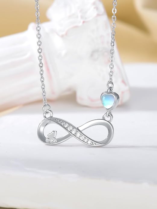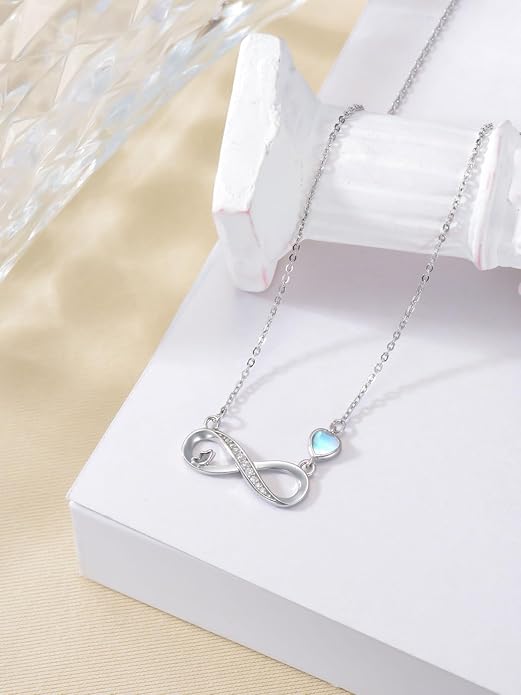 - Material and Size: This infinity heart necklace is made of 925 sterling silver and moonstone. Especially for those with sensitive skin. Size: 0.86*0.32in (22*8mm), 18”+2” extend inches length